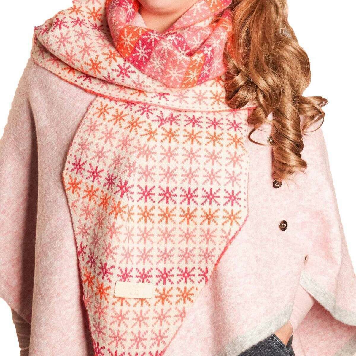 Manufactured from 36% chinlon, 35% acrylic and viscose is this pink women's stars pom pom scarf by the designer Zelly. It measures 185cm(height) x 33cm(width). It is recommended to machine wash at 30 degrees to keep this scarf in good condition. All the scarves come complete in zelly packaging. The Zelly Stars Pom Pom Scarf - Pink has a fun oversized pom pom on each end, giving it a contemporary touch. The warm and cosy material will keep you wrapped up in the cold weather and designed in-house, it is sure to keep you looking stylish, paired with your favourite winter wardrobe attire.