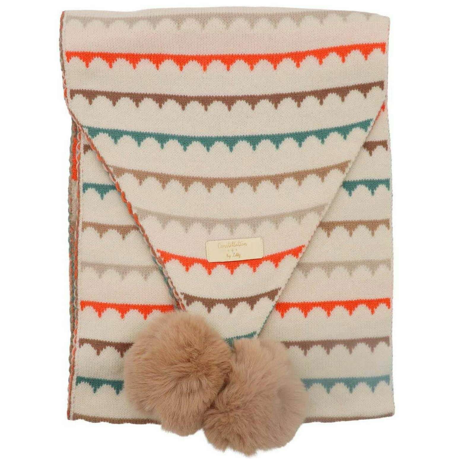 Zelly Waves Pom Pom Scarf - Cream/Orange/Green