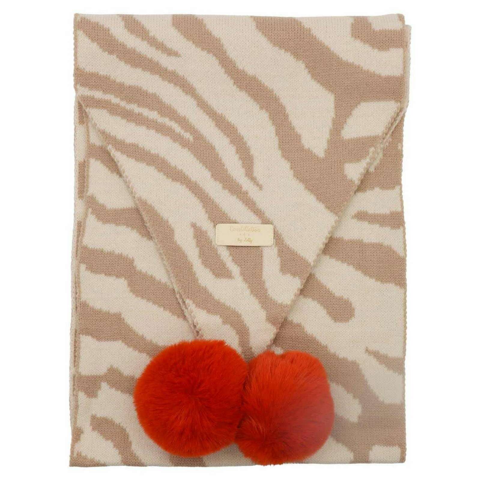 Zelly Zebra Pom Pom Scarf - Cream/Beige